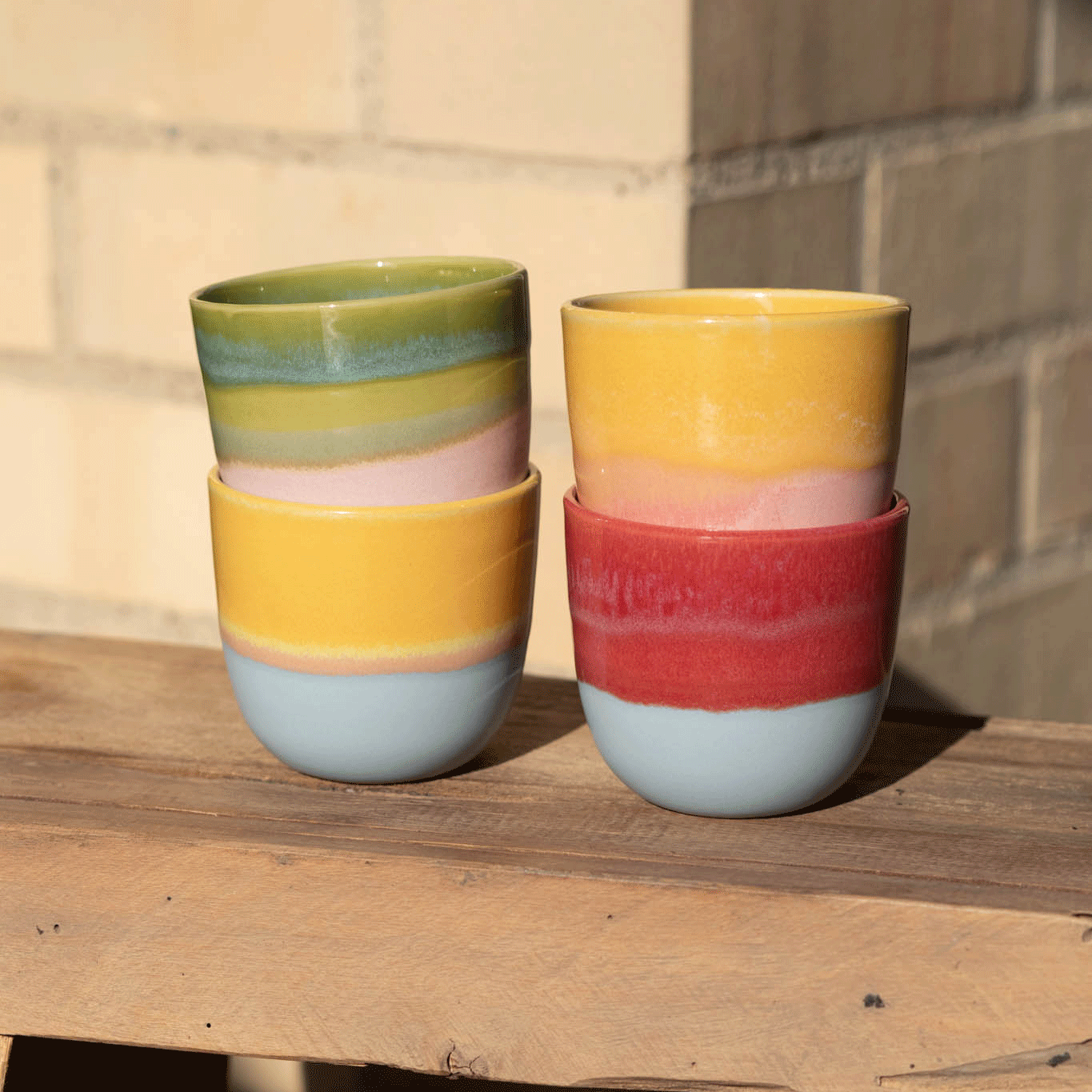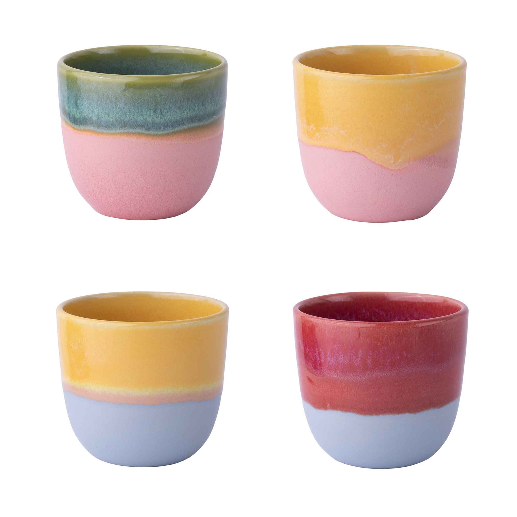 Composez votre propre ensemble Color Block : choisissez quatre tasses à café en céramique bicolores dans vos combinaisons de couleurs préférées et recevez une tasse gratuite – 4 pour 3. Les tasses sont créées par double immersion dans des glaçures, ce qui leur confère leur aspect Color Block caractéristique et leur charme individuel, chaque tasse étant une petite pièce unique. Vous avez le choix entre les combinaisons de couleurs jaune-bleu clair, rose-jaune, jaune-rouge, bleu clair-vert et rose. Parfaites pour être mixées et assorties, pour le cappuccino, le café ou le latte, elles constituent également une excellente idée de cadeau pour tous ceux qui aiment la couleur tout en recherchant un design sobre.
