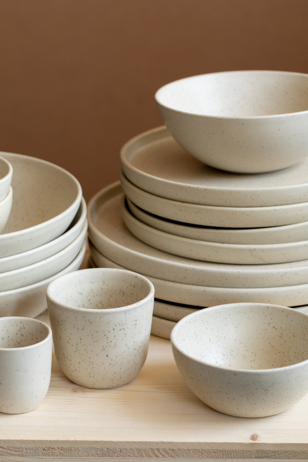 Notre vaisselle est fabriquée à la main dans une petite manufacture sur la côte atlantique du Portugal. Grâce à la robustesse de la fabrication, il y a moins de casse et tu pourras profiter longtemps de ta nouvelle vaisselle !